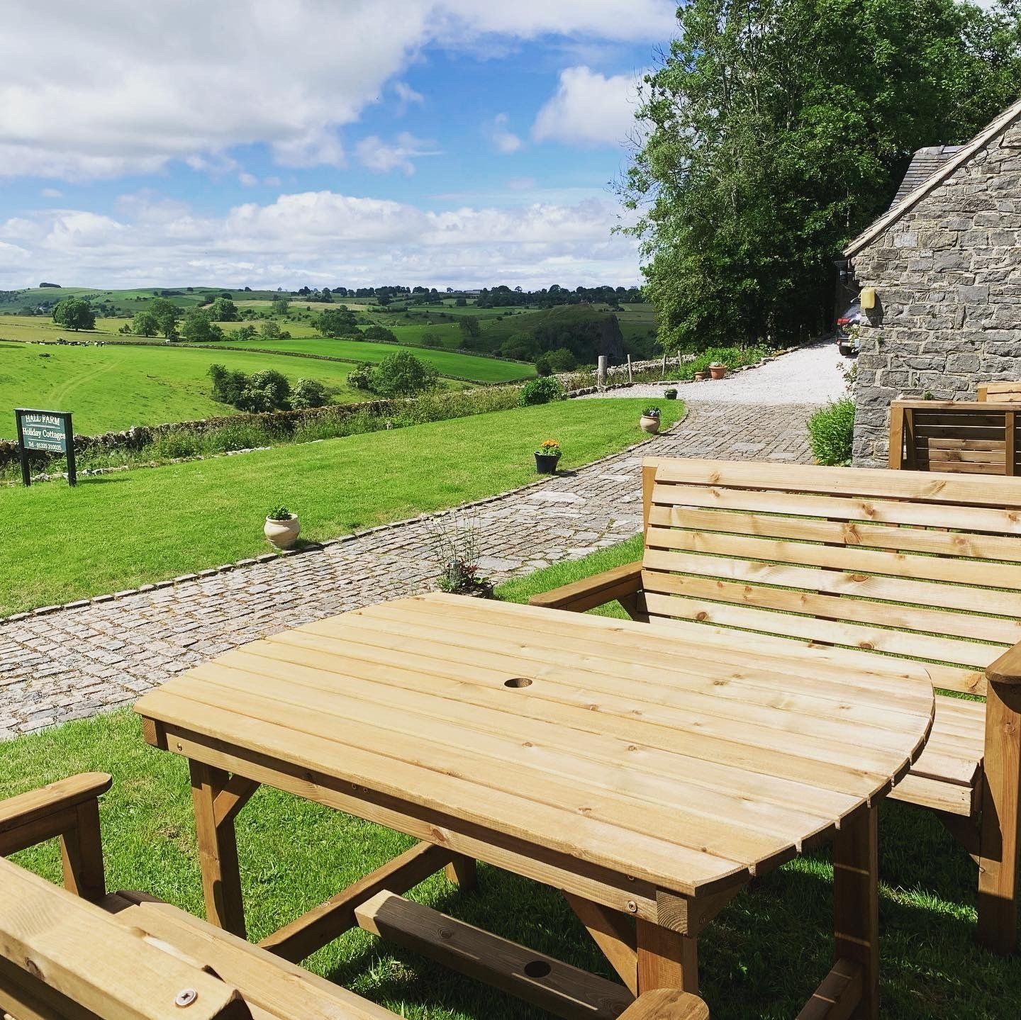 Hall Farm is situated in the beautiful White Peak village of Wetton in the Peak District National Park. Alongside the farmhouse, home to the hosts, there are three beautiful stone-built holiday cottages - all respectfully converted from former outbuildings. The cottages are cosy and clean and boast breathtaking views across rolling fields down to the Manifold Valley and the spectacular Thor's Cave, one of the most popular natural attractions in the Peak District.